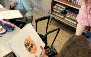 Durant la sessió, la dissenyadora va donar a conèixer als infants de cinquè de primària diverses eines per poder crear el logotip de la seva cooperativa,.