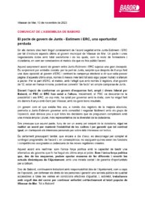 Última hora/ Consulteu el comunicat de premsa valoratiu del pacte de govern entre Junts Estimem Vilassar i ERC VdM Futur que Babord ens ha fet arribar el dimecres 14 de novembre aquí.