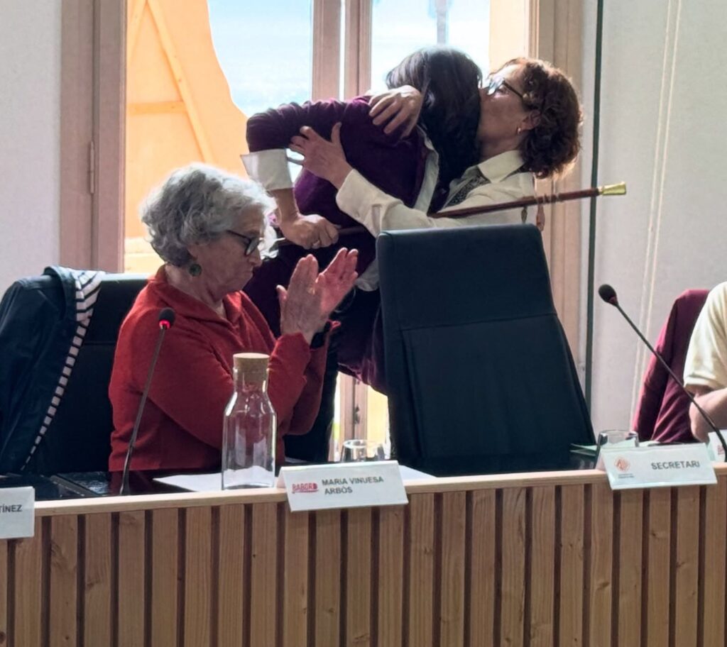 Elena López, doncs, ja és alcaldessa de Vilassar de Mar. D’aquesta manera prometia el seu càrrec “sotmesa a la voluntat popular de les veïnes i veïns de Vilassar de Mar” i s’ha compromès a treballar “per la justícia social i de gènere, la defensa de la terra i el medi i la plena sobirania del nostre país sense renunciar mai als principis republicans”. Després de rebre López la vara de la batllia de part de Laura Martínez Portell, amb abraçada inclosa, la nova alcaldessa de Vilassar de Mar s’ha dirigit a la plenària.