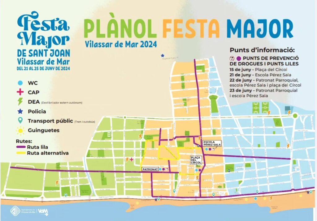 Si pateixes o tens constància d’una agressió sexista pots dirigir-te de seguida al punt lila, personal de barra, personal de seguretat o serveis sanitaris que es trobin en el mateix espai. Consulta el mapa: