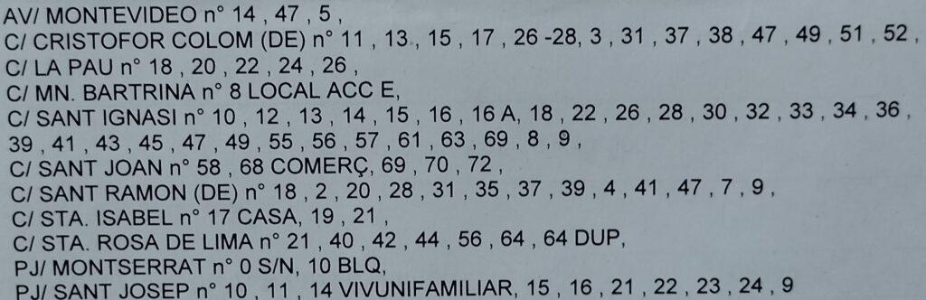 Pel que fa al dijous 10 d’octubre, de 8 del matí a 12 del migdia es tallarà el subministrament en alguns pocs trams dels carrers Arpella, Buenos Aires, Concepció, Sant Andreu i Sant Jaume.